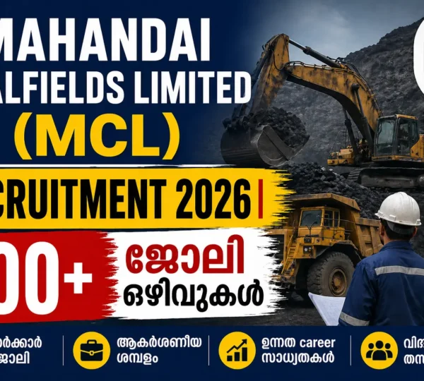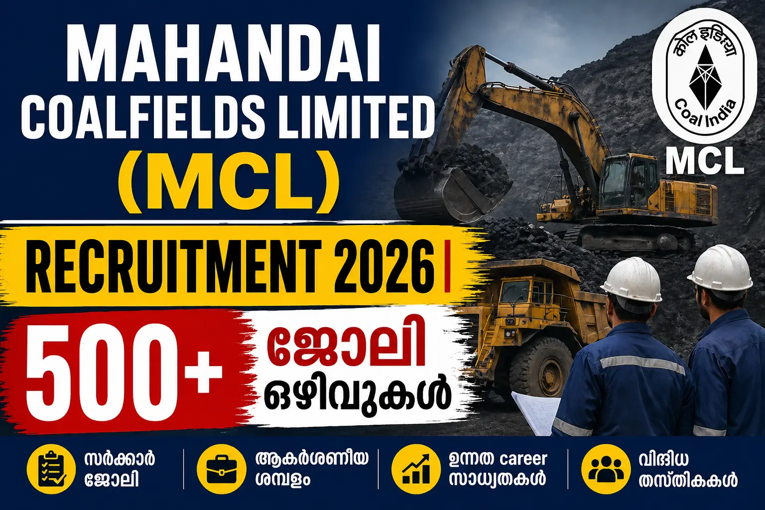 Mahandai Coalfields Limited (MCL)‑ൽ വിവിധ തസ്തികകളിലേക്ക് ഇപ്പോൾ ഓൺലൈൻ അപേക്ഷകൾ ക്ഷണിക്കുന്നു. താൽപര്യമുള്ള ഉദ്യോഗാർത്ഥികൾ യോഗ്യതയും മറ്റ് വിവരങ്ങളും പരിശോധിച്ച് ഓൺലൈൻ വഴി മാത്രം അപേക്ഷിക്കാവുന്നതാണ്.